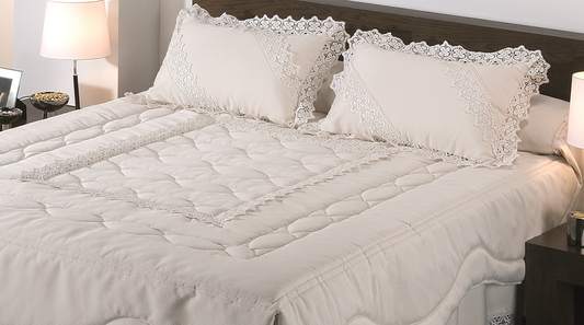 Edredón Coordinado Conjunto de Cama Bordado Venecia Blanco