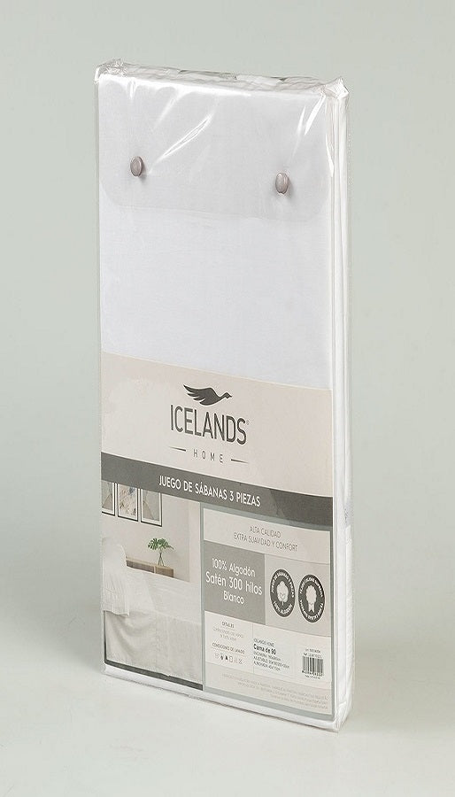 JUEGO DE SABANAS 100% ALGODÓN SATEN 300 HILOS BLANCO ICELANDS
