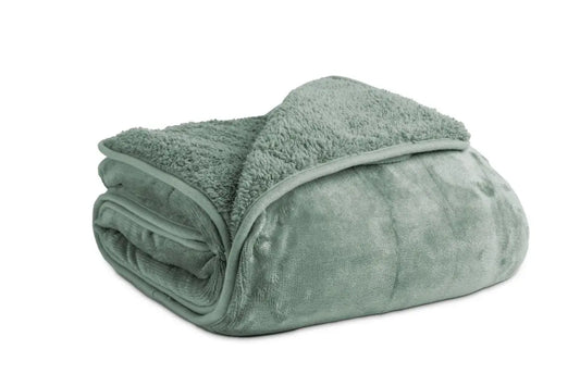 PLAID SHERPA LISO AGUA MARINA 130X160 KARAMELO