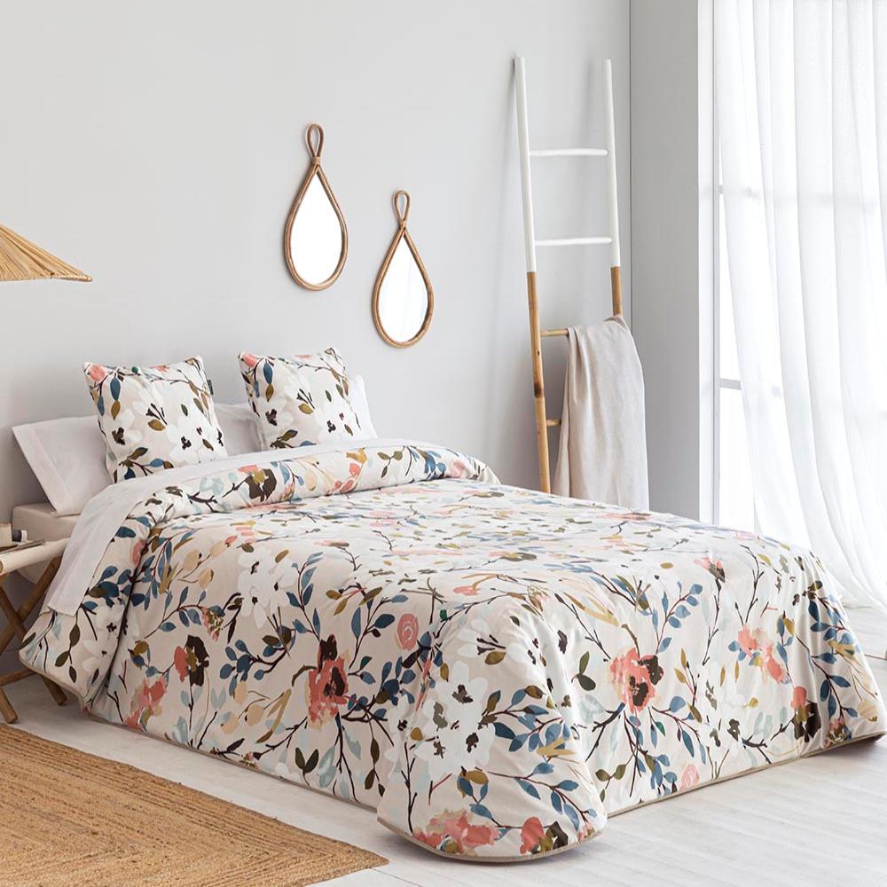 Su diseño elegante se adorna con un hermoso estampado floral en varios tonos, todo sobre un fondo a juego que complementa a la perfección cualquier decoración. Este edredón no solo ofrece funcionalidad, sino que también añade un toque de elegancia y sofisticación al dormitorio.
